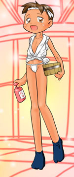 「お兄ちゃんあんま見かけない顔だけどここの街の人? もしかしてここのおフロ屋さん初めて〜?」